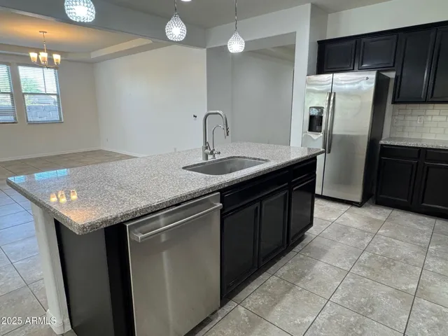 Spacious and move-in ready, this 4-bedroom, 3-bathroom home offers 2,190 sq. ft. of comfortable living on a desirable corner lot in Laveen, just a short drive to downtown Phoenix. The open kitchen features granite counters, a large island, stainless steel appliances, and a stylish tile backsplash. The master suite boasts a walk-in closet and private bathroom with dual sinks, while oversized tile flooring, blinds, ceiling fans, and a washer and dryer add convenience throughout. Enjoy the low-maintenance backyard with a covered patio and large double gate, perfect for entertaining or extra storage. Lessee to verify all info.