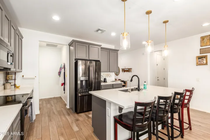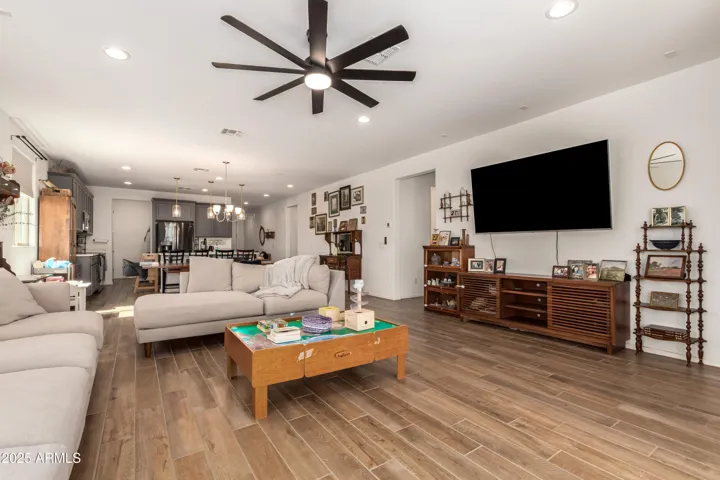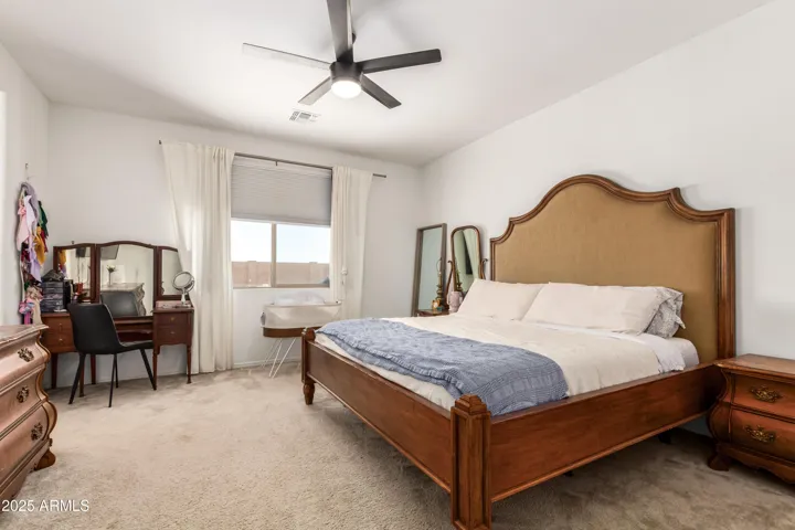 Step into this charming 4-bedroom, 3-bath home in the welcoming community of San Tan Valley. Hosting guests is a breeze in the ranch-style Harley plan, featuring a stylish kitchen with a walk-in pantry, center island, and cozy breakfast nook—all flowing into a spacious great room that opens to a serene covered patio. A quiet study offers flexibility and can be converted into an additional bedroom or a formal dining area. The private owner’s suite includes a luxurious bathroom and walk-in closet, thoughtfully separated from two secondary bedrooms.
