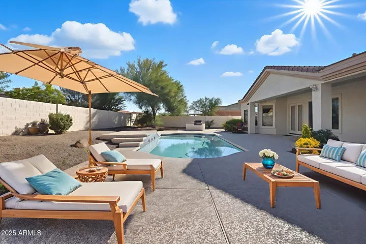 Major updates mean peace of mind: two brand-new high-efficiency AC units (2024), new water softener, and a newly resurfaced pool deck. The entire interior and exterior has been freshly painted in September 2025. Step outside to your private oasis that includes a pool, built-in BBQ, extended covered patio and low-maintenance desert landscaping perfect for year-round outdoor living.