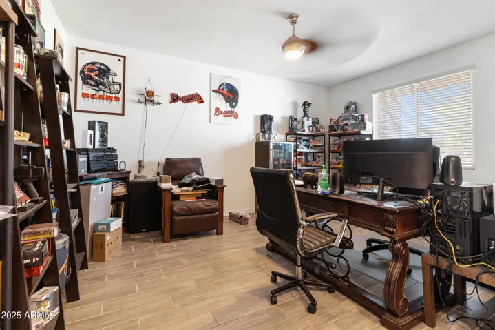 Spacious 4 bedroom home with office, loft, and designer finishes in prime neighborhood! This beautifully upgraded 4- bedroom, 2.5 bath residence offers the perfect blend of comfort and style. Featuring a versatile den or office plus a spacious loft, there’s room for everyone to live, work, and play. Enjoy cooking in the modern kitchen with stunning quartz countertops, sleek white shaker cabinets, and premium finishes throughout. The home boasts wood plank tile flooring-durable, stylish, and easy to maintain. All bedrooms are pre-wired, making it easy to customize your tech needs. Located in Blue Horizons you’ll love the lush greenbelts, well-maintained parks, and inviting playgrounds just steps away. Don’t miss your chance to own this move-in ready gem in a community that has it all!