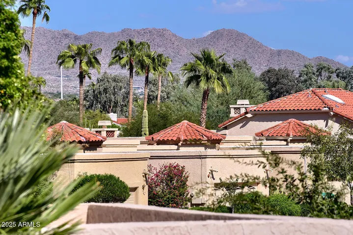Live the Luxury Lifestyle at Suntree East in Scottsdale Ranch! The gated community affords the home to be the perfect lock and leave home. Enter into a lovely front courtyard with a serene fountain to great your guests. Step into a spacious, open and airy great room for easy entertaining w/a cozy fireplace. Eat-in functional kitchen w/breakfast room opens to a large backyard entertaining space. Downstairs guest room/bath along with a spacious office area perfect to work at home. Generous primary suite upstairs with balcony and mountain views, walk-in closet with double vanity in bath. Suntree boasts heated resort style pool/spa and Scotts. Ranch offers fishing and social activities. Abundant amenities such as Scottsdale Ranch Park and Senior Center, great restaurants and shopping top rated hospitals and doctors, and freeway access. ONE NOT TO BE MISSED!