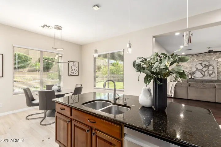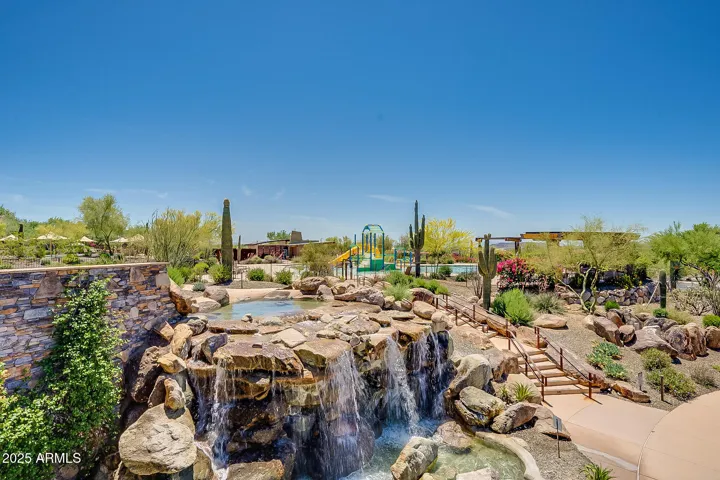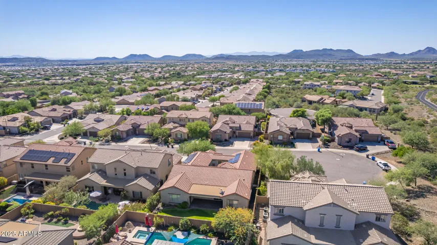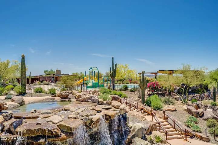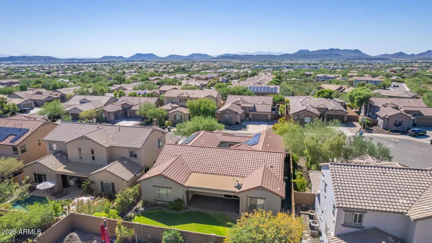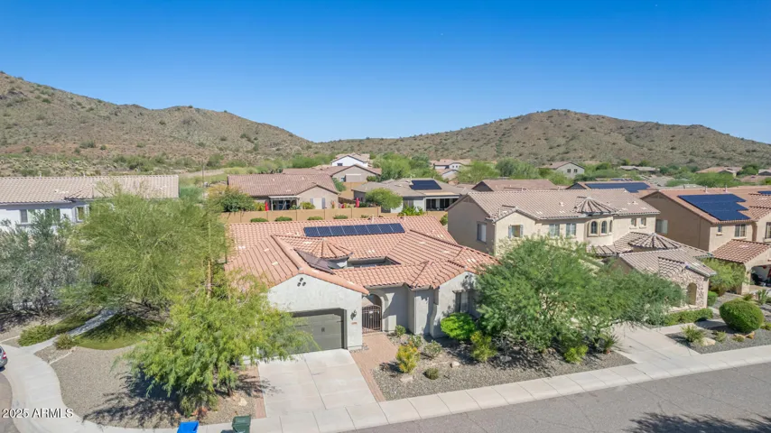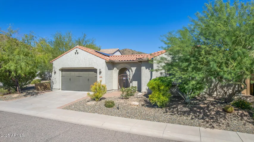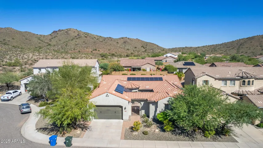 Welcome to this stunning 3,241 sq ft ranch-style home, adjacent to a quiet cul-de-sac and backed by the Sonoran Desert Reserve offering direct access to hiking, biking, adventures and starry nights. Inside, a spacious, open-plan layout features neutral tones, hardwood flooring in the living room with a stone accent wall, and wood-like tiles throughout. This 4-bed, 3.5-bath home includes a dedicated office space, intelligently placed away from the bedrooms. The private primary suite offers backyard views, a spa-like bathroom with double vanities, a soaking tub, and a large walk-in closet. The gourmet kitchen is a chef’s dream, boasting granite countertops, stainless steel appliances, and a large island. Plenty of storage and a perfect view of the backyard complete this space. This home is a smart investment thanks to a fully paid solar system, translating to effectively zero electricity bills for the current owner even with EV charging. New HVAC systems (Aug 2024) and a new water heater (Mar 2022) ensure peak efficiency and low costs. The backyard features a lush grassy lawn and covered patio, while a paved courtyard with a water feature greets you at the front. Located in the highly desirable Fireside at Norterra community, you have access to a clubhouse with a gym, heated pool, spa, and tennis courts. Enjoy quick access to shopping, dining, and the I-17 freeway.