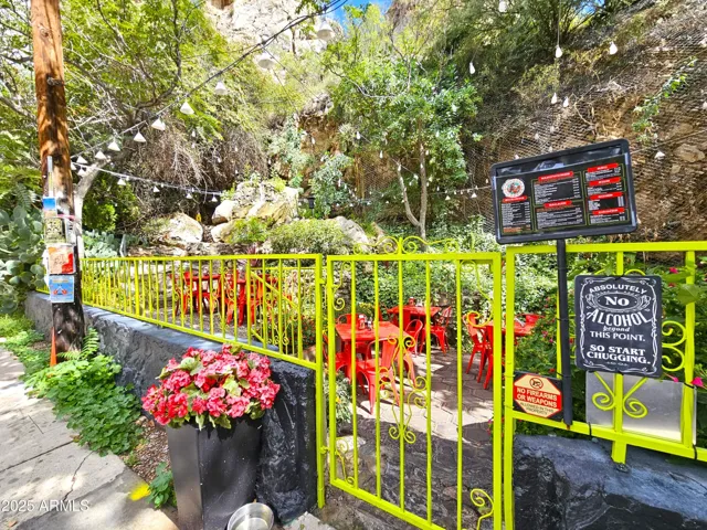 The Bisbee Badassery is more than a restaurant—it’s a restaurant, bar, ice cream shop, and gift shop all in one. With indoor dining, cave seating, outdoor patio space, and even a rooftop stage for live entertainment, this property offers an unforgettable experience for guests.