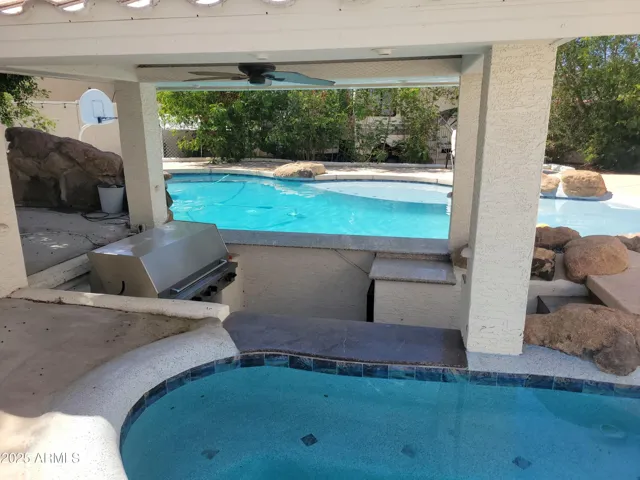 Dont miss this one! Beautiful designer home with backyard oasis. Perfect for entertaining inside and out! 4 bedroom plus den, 2.75 bath. Soaring Ceilings, Marble Quartz counters, walk in pantry, sunken bbq pit, swim up bar, so much room to entertain! This one will go fast!