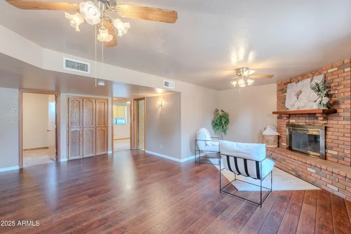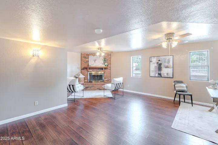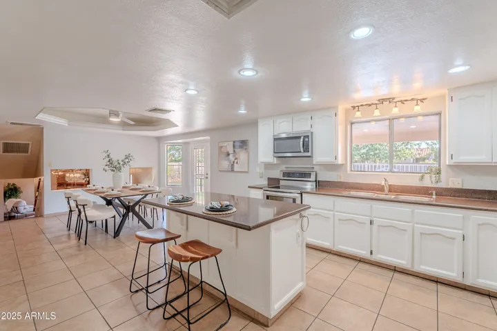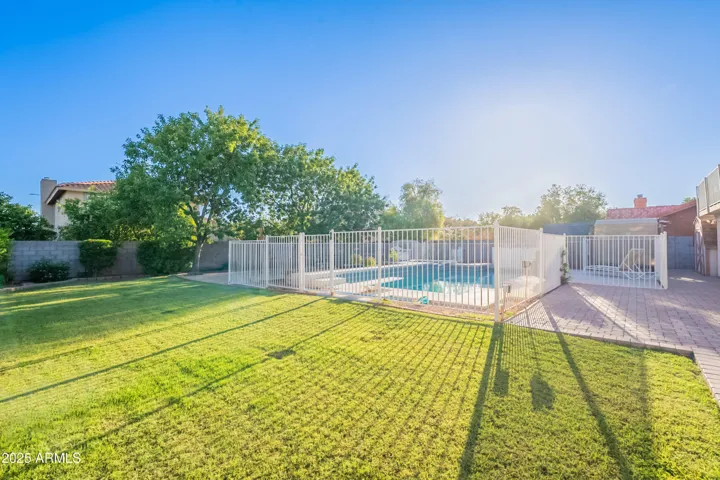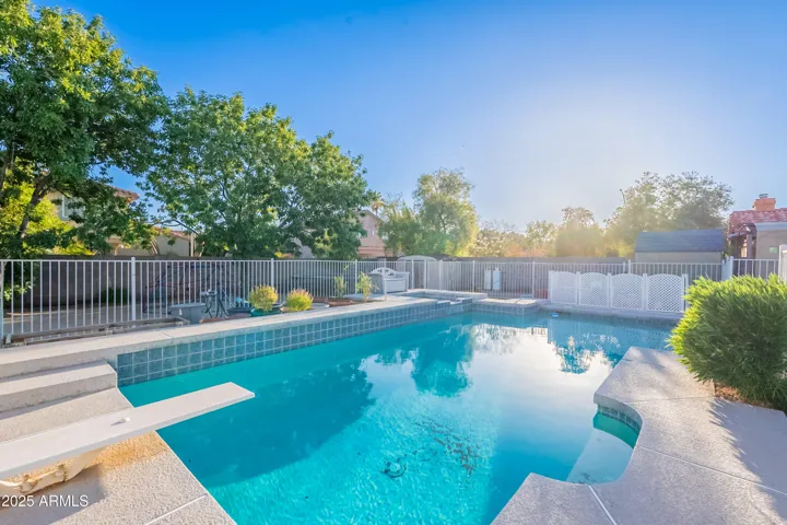 ABSOLUTELY CHARMING Home with NO HOA in Coveted North East Mesa! Entertainer’s DREAM for both inside/outside living! Open floor plan features a kitchen fit for a CHEF with a MASSIVE island, double oven and GIANT pantry. So many areas to host and enjoy family including the downstairs gathering area with a cozy brick fireplace. Oversized bedrooms and a primary retreat with a walkout patio. The backyard oasis features an Extended Patio, Large Grassy Area, Fenced Diving Pool and Storage Galore including multiple sheds. Don’t miss out on this one of a kind gem!