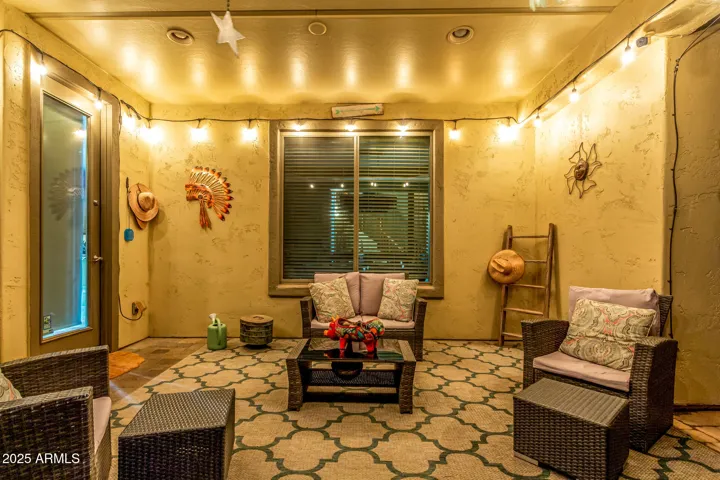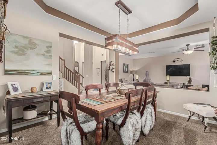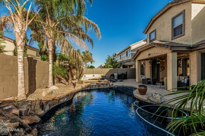 Step outside into your private backyard oasis a beautifully landscaped entertainer’s dream featuring a sparkling Pebble Tec® pool with a waterfall, a heated spa, cozy fire pit, and low-maintenance landscaping. It’s the perfect setting to unwind or host unforgettable gatherings under the Arizona sky.