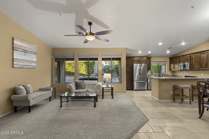 Beautifully maintained and move-in ready, this single-level 3-bedroom, 2-bath home features a desirable split floor plan in sought-after McDowell Mountain Ranch, just minutes from premier shopping, dining, and scenic trails. The open great room seamlessly connects the kitchen, dining, and living areas, complemented by a stylish beverage bar—perfect for entertaining. Thoughtful updates include Pella windows and doors, a newer water softener, and a 2020 roof replacement. The backyard has been completely transformed with paver walkways, landscape lighting, and low-maintenance desert design. A tranquil waterfall, multiple patios, and meticulous landscaping create a serene outdoor retreat—ideal for full-time or seasonal living. Come see this exceptional home in person, you’ll fall in love.
