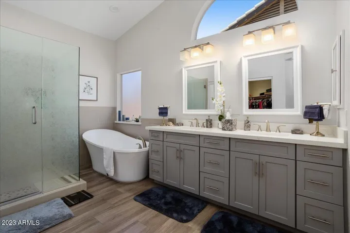 3 CAR GARAGE, POOL!This amazing home, with split floor plan and high soaring ceilings has been remodeled from the walls out, and offers every upgrade imaginable. The master suite offers a luxurious master bath hosting new freestanding tub, seamless glass shower with stunning tile inlay, newer double sinks, with custom self closing cab’s and quartz counters-Newer flooring including newer carpet & pad in bedrooms & custom wood grain porcelain tile t/o,with all new 5 inch baseboard. Newer inside & outside paint, new roof, All newer fixtures thru-out- Newer remote operated ceiling fans, new paddle switches t/o-Led recessed lighting t/o-child resistant outlets- Stunning newer light fixtures & newer hard-wired fire alarms.POOL SERVICE IS INCLUDED