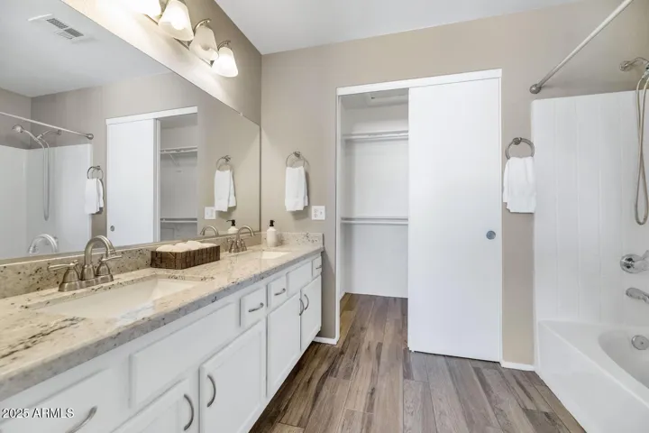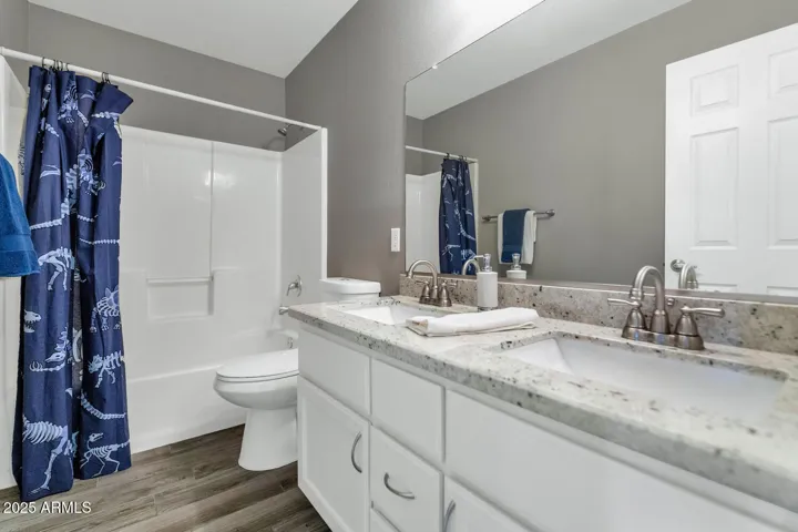 Wonderful Community of Laurelwood at Villa De Paz * 5 Bedroom 3 baths * Upgraded Kitchen w/ SS Appliances, granite countertops with large breakfast bar & undermount sink * Wood look tile plank flooring * Upstairs Spacious Primary ensuite w/double sinks, garden tub/shower combo and large walk-in closet. Updates include, New Water Heater (’25) & HVAC (’25); Roof replaced in 2019 * Newer Garage Door/Springs & Opener in 2024. *2017 Samsung smart door refrigerator * W/D included * Ceiling fans and blinds throughout. Plus lots of storage * Covered patio with easy low maintenance backyard * The HOA fee includes community pool & park, plus the front yard landscaping * Prime Westgate Entertainment District, Loop 101 and Top Golf *