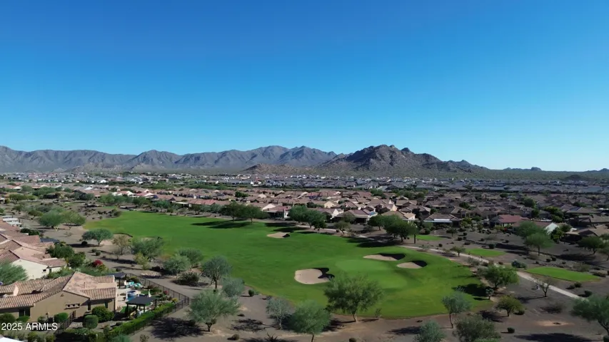 Welcome to Sun City Festival, where every day feels like a getaway and endless possibilities await. Whether you’re pursuing your passions or discovering new ones, this premier 55+ Active Adult community in Phoenix’s Northwest Valley offers it all. Enjoy two state-of-the-art recreation centers with resort-style pools & spas, fitness studios, outdoor patios & an indoor walking track. Tee off on the 27-hole Copper Canyon Golf Course managed by Troon Golf®, get creative in the woodshop & crafts studio, or stay active with pickleball, bocce & tennis, there’s something for everyone! This spectacular golf course home embodies resort-style living at its finest. Perfectly positioned on the 2nd green of the Copper Canyon Vista Course, this one-of-a-kind Endeavor model captures unobstructed panoramic views of the lush fairways & the breathtaking White Tank Mountains. Wake up to radiant sunrises & unwind with shaded, tranquil afternoons on your extended patio. Inside, 2,473 sq ft of thoughtfully designed space offers 2 spacious bedrooms, 2.5 baths & a versatile den. The chef’s kitchen shines with Coconut white cabinetry, stainless steel appliances, a Wolf vent hood & a raised dishwasher for effortless convenience. The open-concept great room invites seamless entertaining, while the oversized lot offers room to design your dream pool. With an extended 2-car garage & a separate golf cart garage, this home blends elegance, function, and the ultimate Arizona lifestyle.