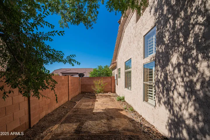 The exterior front welcomes visitors with custom pavers and a courtyard framed with a gabion rock basket feature wall. The backyard is a gardener’s retreat with an extended custom paver patio, mature majestic trees, a versatile fenced area (imagine raised garden beds or a dog run), and custom wired tree lights.