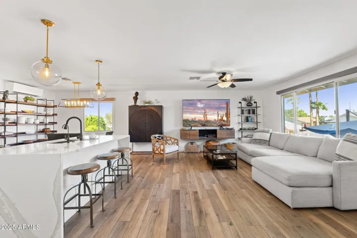 Impeccably remodeled mid-century modern, with great yard & heated/chilled Pool! Thoughtfully renovated from top to bottom and sure to impress! Entry foyer with vaulted ceiling, and bright, open upper living level and lower-level family room opening to 3 bedrooms and the laundry. The spacious and open upper-level gives you windows, views and a great room floor plan with kitchen open to the lounging and dining areas. The gourmet kitchen has loads of cabinets, stainless steel appliances, pantry and large island w. seating. The upper split Primary retreat offers a spacious en-suite, large walk-in shower & double sink vanity. The private backyard offers multiple deck areas, Pergola, Heated and Chilled Pool, Hot Tub, Fire Pit, artificial grass and tons of seating.