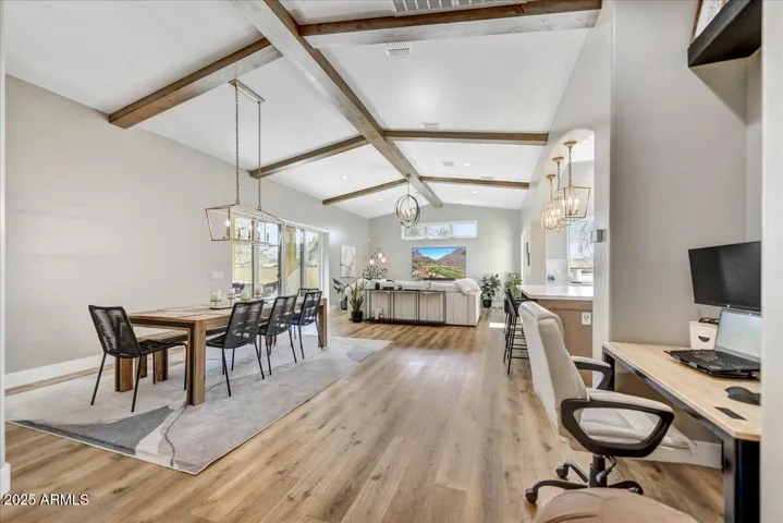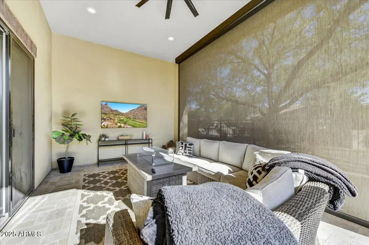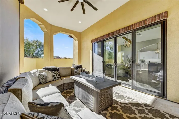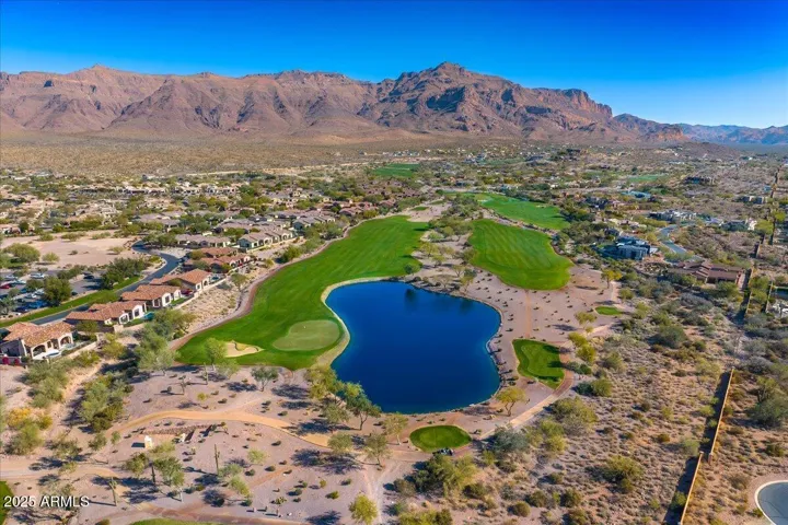 Nestled in the mountains of Gold Canyon, the exclusive golf community of Superstition Mountains offers a perfect blend of natural beauty and luxurious living. Surrounded by the striking Superstition Mountains, this exquisite community features panoramic desert views, lush fairways, and world-class amenities. This beautifully updated 3-bedroom, 3-bathroom home boasts an open floor plan with modern finishes throughout. The spacious layout creates a seamless flow between the living, dining, and kitchen areas, perfect for both everyday living and entertaining. The kitchen features the latest in design, with sleek cabinetry, high-end appliances, and stylish countertops. Step outside to the inviting patio, complete with an automatic sunscreen for comfort during the day and perfect for . outdoor dining or lounging. A built-in above ground spa adds a touch of luxury, offering a serene space to unwind and relax under the stars. With all these features and more, this home combines comfort, style, and functionality to offer the ultimate in modern living. Must see this turnkey home. Furnishings available in a separate bill of sale.