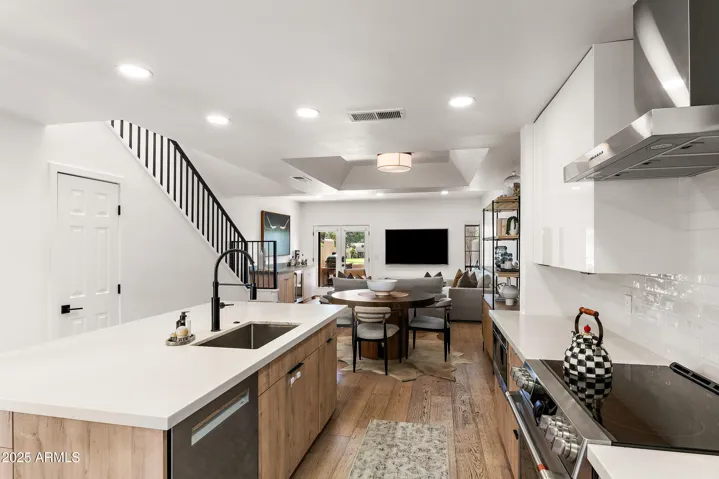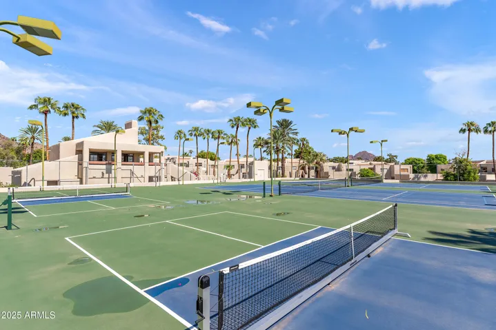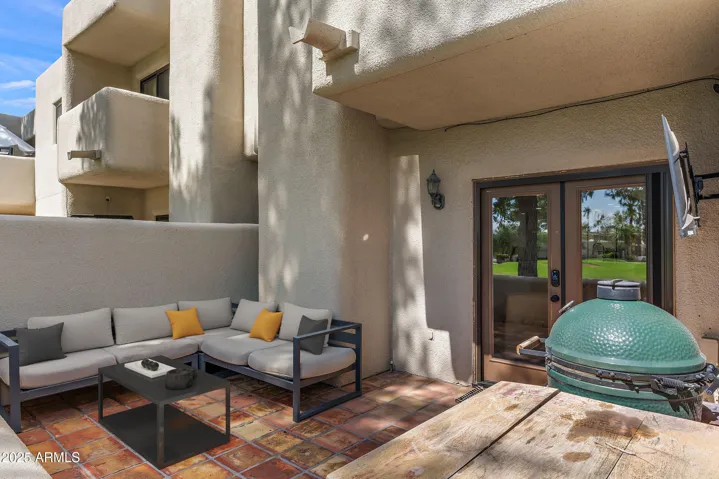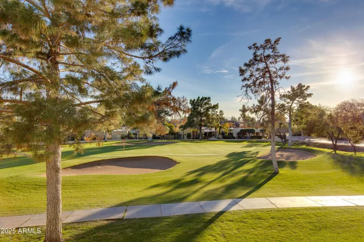 Refined finishes carry throughout the home, including Santa Fe-style wall textures, Waterworks tile, and Toto fixtures. A full-size LG ThinQ washer and dryer add everyday ease, while the kitchen stands out with a Café range, refrigerator, and wine fridge, paired with a Wolf microwave drawer and Bosch dishwasher. Positioned directly on the Biltmore golf course within the guard-gated Biltmore Courts I community, this home offers not only lush view of the 11th green but also access to resort-style amenities and a prime location near the Arizona Biltmore Resort, fine dining, and world-class shopping.