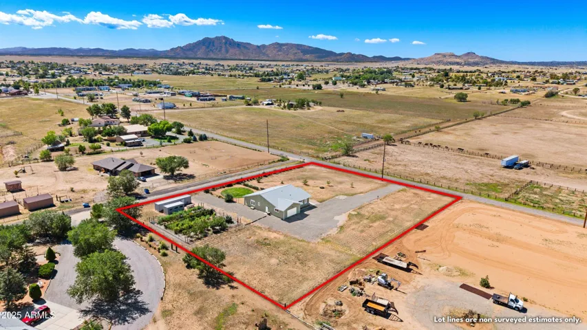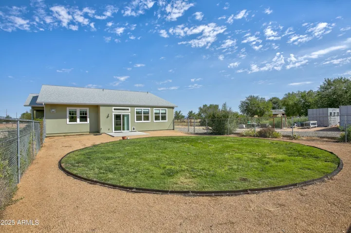 True Country Charm & numerous modern conveniences including City Water! This Garden Farmhouse features Granite Mountain views, farmhouse finishes, a cozy gas fireplace, loads of storage & an expansive garden. An inviting Open Floor Plan highlights a bright, cheerful kitchen that truly shines with a large island, modern storage drawers, two pantries, and all appliances convey. Flexible layout offers a den or formal dining room flowing into an AZ Room w/ a doggy door & a roomy, grassy, fenced in yard. Extras include a spacious laundry room, extended garage and 2 shipping containers that convey.-one w/ windows for a greenhouse or workshop (8×20) & another for generous storage (8×40 has power). Fenced in Garden includes Apple Trees, Peach, Pear, Cherries, Blueberries, Figs & so much more!