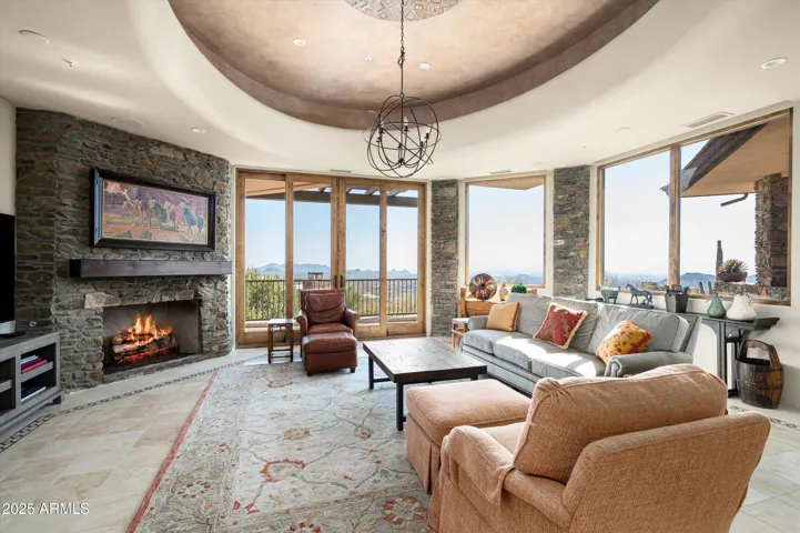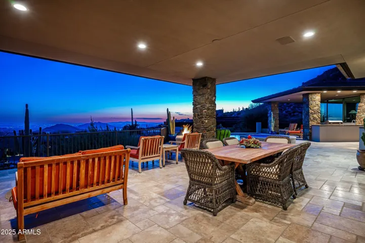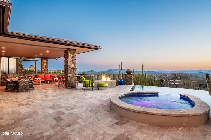 Perched at the top of Sunset Canyon, this custom home offers some of the most breathtaking views in all of Desert Mountain. Thoughtfully designed for single-level living, the main floor features a gourmet chef’s kitchen, spacious family room, luxurious primary suite, versatile game room, and a powder room. Just off the kitchen, the covered patio, pool, and spa create a seamless indoor-outdoor living experience, all positioned to capture the stunning vistas.