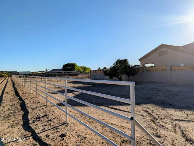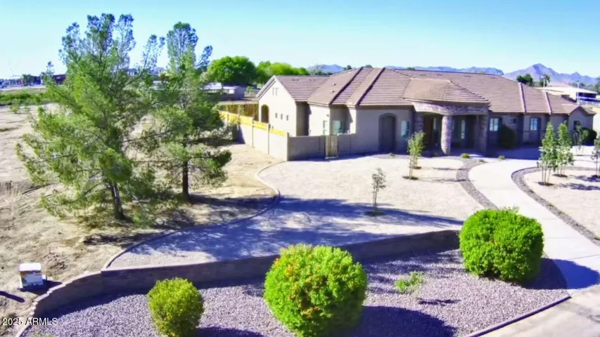 Beautiful custom ranch home on 3.27 acres, less than 5 minutes to shopping & restaurants! NO HOA. Flood irrigation, covered horse stalls, multiple pastures, plus 2 door custom barn, sparkling pebble-tec pool with waterfall. Home features 5 bedrooms 3 beautifully remodeled bathrooms, 36” wood-look tile throughout. Gorgeous custom kitchen with sleek quartz countertops, waterfall island, & top of the line KitchenAid appliances. Wide open feel with 12 ft ceilings & 8 ft doors, All NEW windows (2024), 4 car extended length garage with 9 ft garage doors. The covered back patio spans over 120 feet. This property provides the best of both worlds, enjoy the laidback country lifestyle on a private paved road with only 3 other custom homes. Enjoy direct access to QC wash for miles of trails right from your property. Did I mention 3.27 acres with NO HOA?