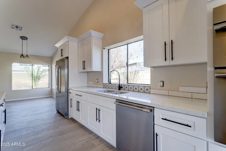 Model Sharp Remodel! Step into this re-imagined chef inspired kitchen, Gorgeous 10ft long quartz island, Custom Shaker Cabinetry Dressed in Black Hardware pulls,, 30inch 4 burner GE electric cooktop with built in Telescopic Downdraft Vent, Spice Racks, plenty of cab storage on both sides of the Island, Stainless Steel built-in Wall Oven with Convection Microwave, Stainless Steel Counter Depth Dbl Door Fridge, Stainless Dishwasher, nice pantry & Subway tile backsplash! Soaring Vaulted Ceilings, Beautiful 36inch plank style ceramic tile, Plush Carpet, Big Fireplace, eat-in kitchen, Recessed lighting, Ceiling fans in all rooms, Big Windows make it Light & Bright! Master Suite with Luxurious Tiled Shower, Clear Glass door, Dbl Farmhouse Vanity sinks, Big Walk-in closet 6 panel doors, Black lever door handles & hinges, Guest bath with dbl Vanity Sinks, Elegant Ceramic Tile Tub/Shower, Fresh 2 tone Interior paint, No Popcorn, New toilets! Culdesac Lot, New Exterior Paint, 2 Car Garage Plus a 15×21 Detached Garage/workshop out back, RV Gate, Bring your vintage cars, off road vehicles, trailers and park under your Huge 40ft long Attached Carport! Wow! New Old World Paverstone patios and walkway, Low maintenance Landscaping, Tool Storage Shed and Best of All a Brand New Shingle Roof with 5 year warranty! Hurry!