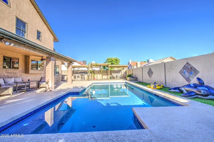 You will simply love this amazing home. Immaculately clean from ceiling to floor with great features and upgrades. The first thing you’ll notice is the great curb appeal and attractive, yet easy to maintain, landscaping. There is an elegant entryway, formal dining room, separate living & family rooms, ceiling fans in all the right places, 3 spacious bedrooms, 2.5 baths, and a laundry with extra cabinets for storage. You’ll spend plenty of time in the backyard relaxing and entertaining. It offers a covered patio, sparkling swimming pool, and more than enough room to play. Just minutes from the 101, restaurants, shopping, and great schools & parks. Come see this one for yourself. You have found your new Home Sweet Home!