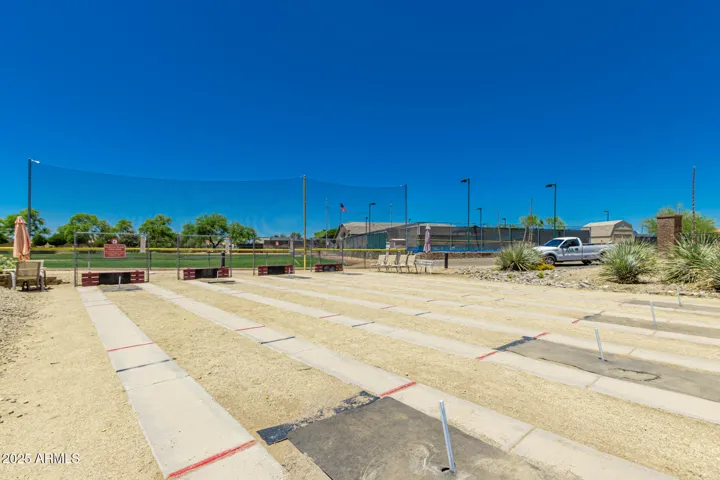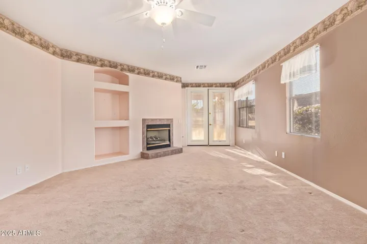 Start your new chapter in this stunning single-story home in 55+ community Arizona Traditions sitting on big lot. Full of elegant touches, this home features 2 bedrooms plus den, 2 baths & a 2-car garage with cabinets. Step inside to fall in love with generous living areas showcasing soaring ceilings, arched passageways, tile flooring, & earthy colors. Whip up delicious meals in the impeccable kitchen, equipped with ample cabinetry, tile backsplash, tiled countertops, an island, a pantry, & built-in essentials for a seamless cooking experience. The airy main bedroom hosts a private exit for convenience, a fireplace to add warmth, a full bathroom with an oversized dual sink vanity, & a walk-in closet. The den is perfect for an office or quiet retreat. Enjoy outdoor living in the backyard. featuring a covered patio perfect for relaxation, a beautiful stone waterfall, plenty of space for entertaining, and a soothing desert landscape. This welcoming adult community has tons of amenitiesvisit the pool, spa, golf, tennis court, and more! This gem is a must-see!