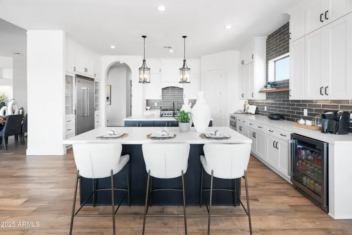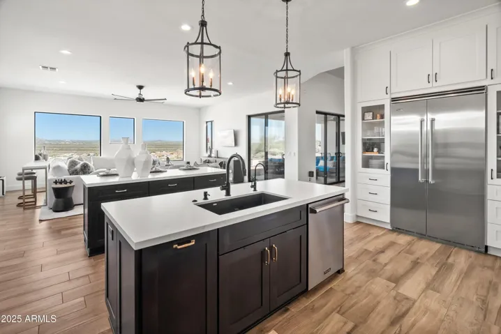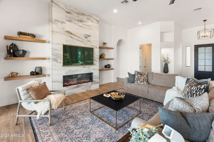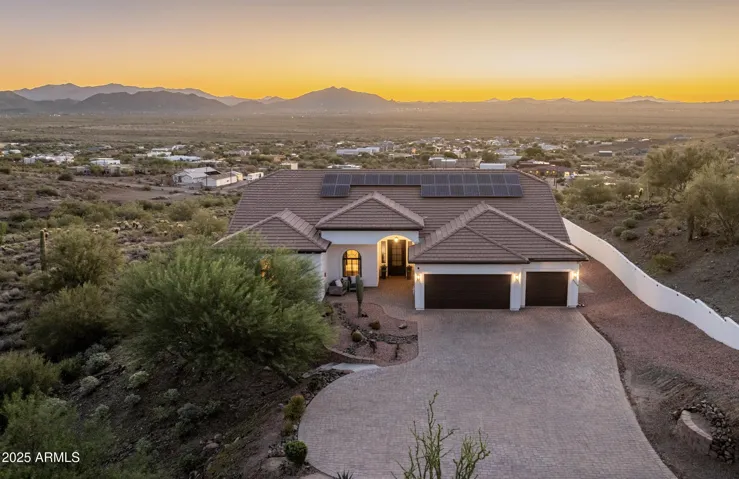 If you are looking for spectacular unobstructed views, privacy, and luxury finishes you are in the right place! A private stone paved driveway leads you to this custom, nearly 3,400 SQ FT home located 2,000 ft up in the Phoenix Sonoran Desert on an acre+ lot. Owners completely renovated this desirable split-floor plan (12ft ceiling) home after purchase in 2021, including new ceramic wood-look plank tile flooring t/o, new kitchen w/ Viking appliances, 6-burner gas cooktop & oven, semi-custom soft-close cabinetry, walk-in pantry, and 2 large islands for entertaining. The expansive master suite is a true retreat w/ a stunning floor-to-ceiling fireplace wall & 65” Samsung Picture Frame TV, and spa-like bathroom w/ his/her walk-in closets. Storage is plentiful, w/ the oversized 3-car garage. The home is super low maintenance w/ LED lighting t/o & entire home filtration system. Fully paid solar lease has approx 9 more years – bills average $20/month. No HOA or interior steps AND VIEWS in all directions!