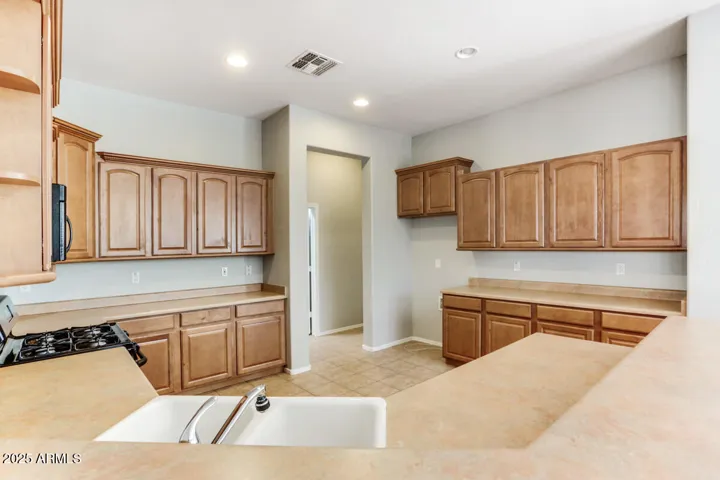 This spacious four-bedroom Craftsman-style Executive home is nestled on a Prime quarter-acre lot, located in the highly desirable Main Street District of Verrado. Enjoy the wide boulevards and Mountain Views, indulge in the luxury of room, and gracious Front Porch living, that is the hallmark of life in Verrado’s Main Street. Relax under the canopy of your fully covered wraparound front porch, or stroll to the pools, shops, restaurants, parks, and schools. This 4 bedroom home boasts an ample 2,606 ft.² of interior on a single story, with the privacy and comfort of three full bathrooms, and a three car garage . The generously proportioned lot of over 1/4 of an acre allows you to enjoy play in the ample and fully enclosed backyard for privacy, safety, and security, or gather for entertaining.