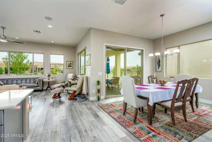 Located on the greenbelt in the award winning active adult community of Province, this rare 3 bedroom, 2.5 bath Redding floor plan with energy efficient spray foam insulation is move in ready and waiting for you. As you pull up, you are greeted with easy care desert landscaping and brick pavers courtyard. Inside you have a den on the left and 2 bedrooms and guest bath on the right. The kitchen overlooks the great room and has a center island, 42” cabinets, pull out shelving. The dining room has a wall of cabinets with glass doors on the upper cabinets with sliding doors to the covered patio. The great room is perfect for entertaining or just relaxing. Your large master suite overlooks the greenbelt. The bath has dual sinks and a closet big enough for all your clothes. The walk-in pantry is around the corner from the kitchen and across from the laundry room with a sink and extra storage. The extended lenght garage completes the interior of the home and has cabinets along one wall.