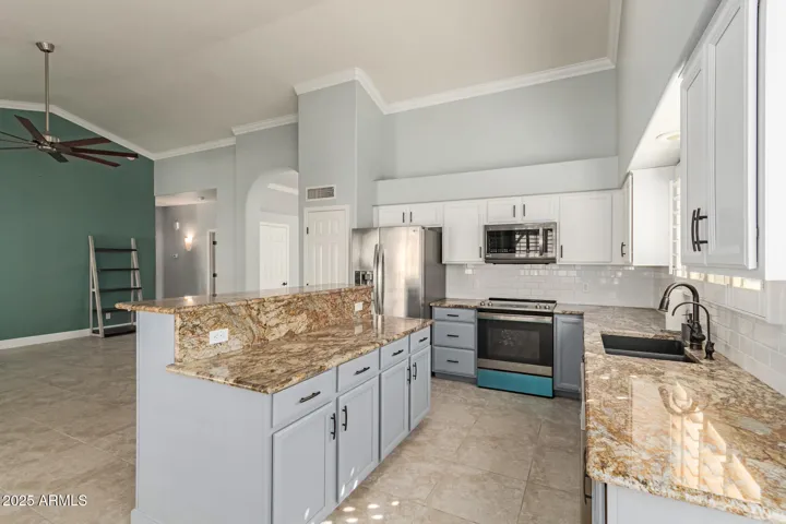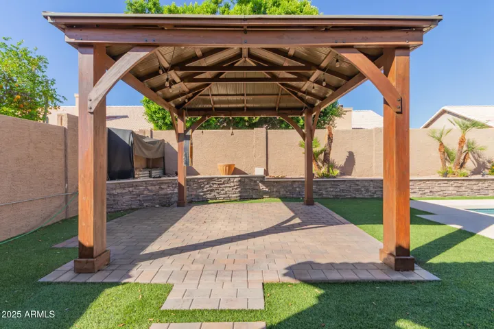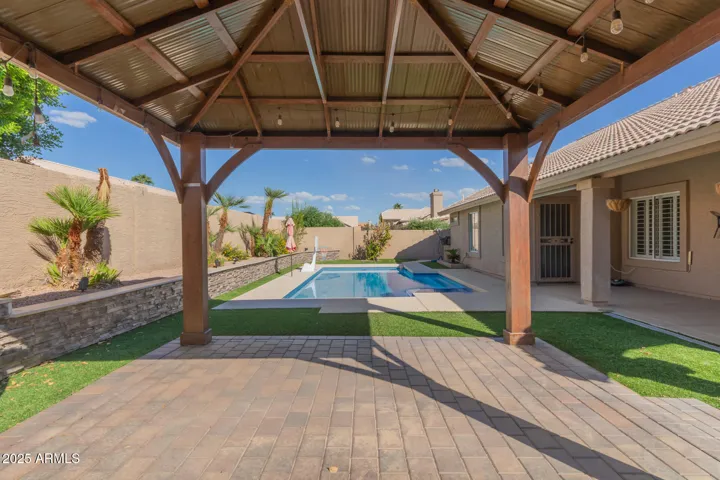 Fall in love with this chic single-level home in the heart of Mountain Park Ranch. Designed for modern living, this 4 bed / 2 bath features soaring vaulted ceilings, plantation shutters, crown molding, and stylish updates throughout. The kitchen offers granite slab counters, white cabinetry, and stainless appliances, while the remodeled primary suite boasts a spa-style walk-in shower. Step outside to your own backyard retreat with a pebble-tec pool, shaded gazebo lounge, and low-maintenance turf—all in one of Ahwatukee’s most sought-after neighborhoods.