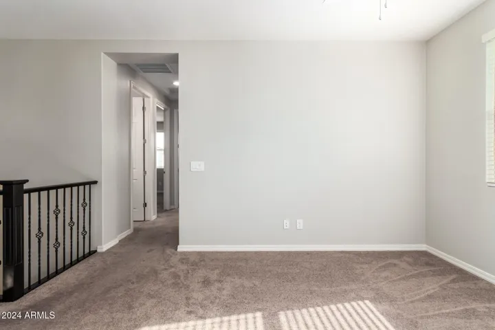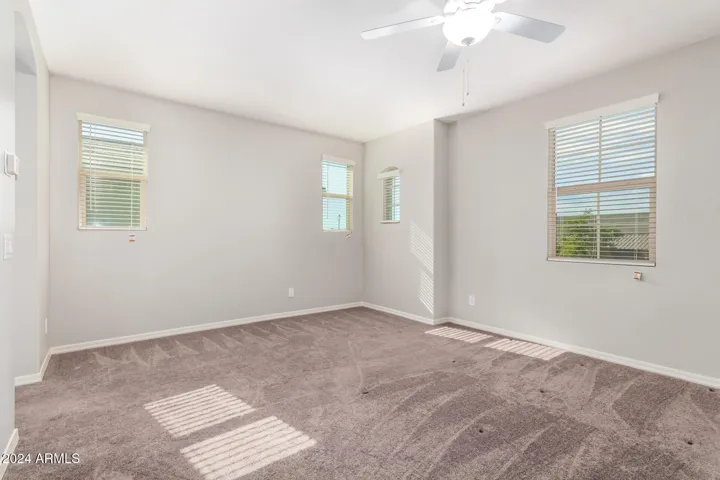 This beautiful home is located in Cooley Station and move-in ready. It’s a 3 Bedrooms with split floorplan, 2.5 Bath with a Loft with a 2.5 car garage with extra space for storage. Beautiful atrium sliding glass doors the lead to backyard, lots of light throughout the home. Great Room feel with Granite counter tops in kitchen with pantry, Island with Breakfast Bar and a separate dining area, ceiling fans throughout house, tile and carpet, upgraded staircase, main bedroom has an in-suite separate bathroom with dual sinks, large shower and large closet, upstairs spacious laundry room with built-in cabinets for storage,