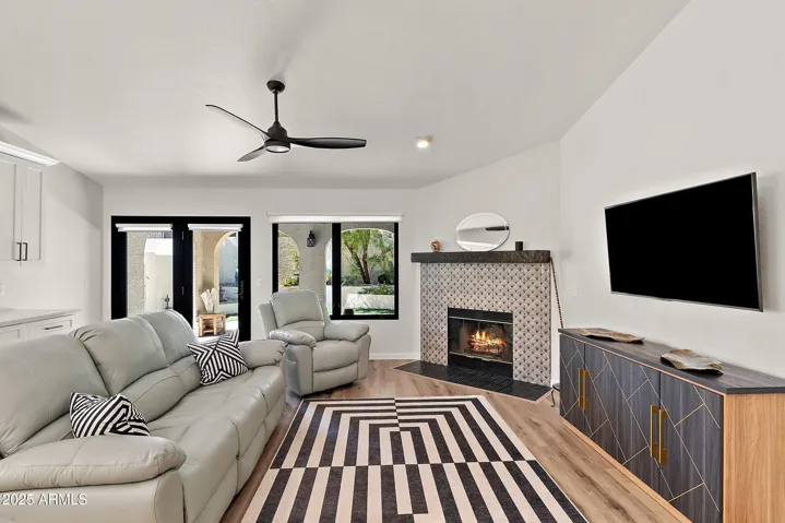 SINGLE-LEVEL Modern Spanish Masterpiece nestled at Pointe South Mountain in the desirable Ahwatukee Foothills! Stunning 3 bedroom, 2 bath home offers open spaces & upgraded with NO EXPENSE SPARED! Step into a freshly painted home with vaulted ceilings & luxury plank floors! Complete bathroom remodel showcasing new walk-in shower with glass door & vanity, new faucets, toilets & all new light fixtures! Chef’s dream island kitchen features Quartz counters, custom backsplash, built-in buffet, Bosch appliances, sleek pendant lighting, white cabinetry & contemporary fixtures! Family room with cozy fireplace opens to the outdoor covered patio overlooking the low maintenance yard! Amenities include 4 POOLS & SPA’S, WALKING/BIKING TRAILS all surrounded by the championship Foothills Golf Club!