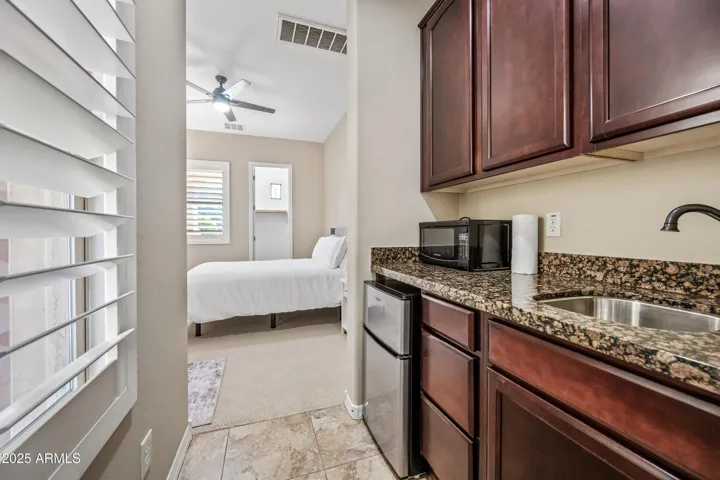 Welcome to this desert getaway in beautiful Palm Valley, Goodyear. The main home features 3 bedrooms and 3 bathrooms. The attached casita offers a fourth bedroom and private bathroom, perfect for guests or extended family. Enjoy the cozy game room with a pull-out couch, ideal for movie nights or extra sleeping space. The home’s modern furnishings, large windows, and inviting living areas create the perfect atmosphere for unwinding after a day of golf, hiking, or exploring nearby attractions. This retreat sits directly on one of Palm Valley Golf Club’s scenic courses, offering peaceful views and resort style relaxation just minutes from dining, shopping, and entertainment.