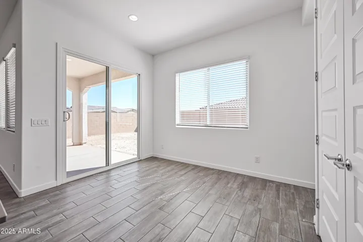 Welcome to your BRAND NEW 4bdrm home, located in Windstone Ranch, a desirable master-planned community in North Surprise offering easy access to shopping, dining, entertainment, and beautiful regional park views. This stunning 4-bedroom plus flex space, 3-bath open concept home features brand-new stainless steel kitchen appliances, quartz countertops, modern maple slate cabinetry, and elegant 7×22 tile flooring throughout. You will have resort-style amenities including a pool, playground, and basketball court. Designed for comfort and style, this move-in ready home perfectly combines modern living with everyday functionality! Turf scheduled to be installed in backyard by end of the month.