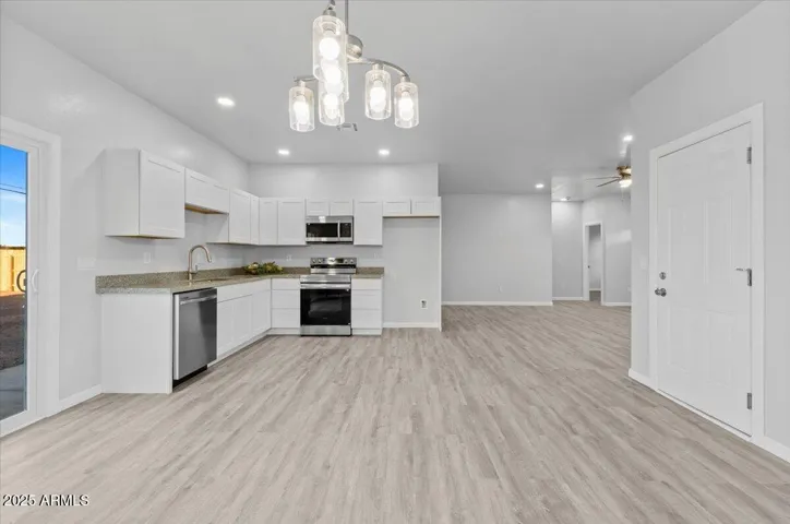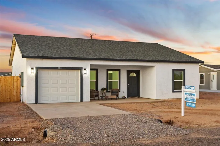 Step into serene desert living with this stunning ,brand new home at 3450 Romana nestled in tranquil neighborhood with peaceful neighbors this gem offers the perfect blend of modern elegance and small town charm. Imagine sipping coffee on your front porch, complete with bistro seating ,as you soak in vibrant sunrises. The fully fenced backyard is awaiting your imagination from bbq area with seating for stargazing under Arizona’s endless night skies or hosting unforgettable fiestas! Inside, luxury vinyl flooring flows through bright open spaces complemented by sleek white cabinetry and gleaming stainless steel appliances that make every meal a masterpiece The single car garage provides safety and convenience while the homes prime location is by shopping in and out barrros Canes and local steakhouses. Say good bye to high rent no privacy this offers carefree livin. An hour from Phx Airport and Hour from Tucson.