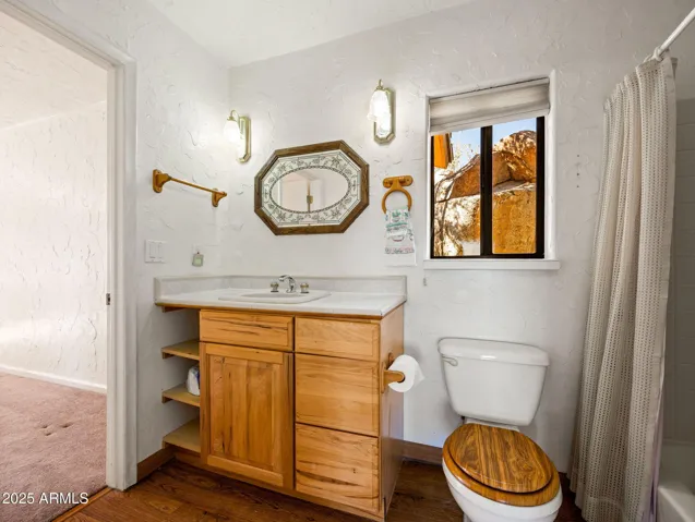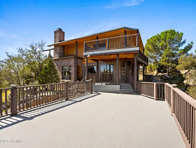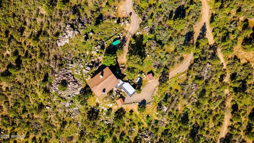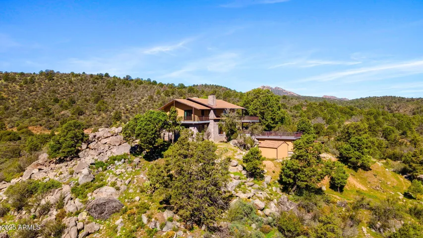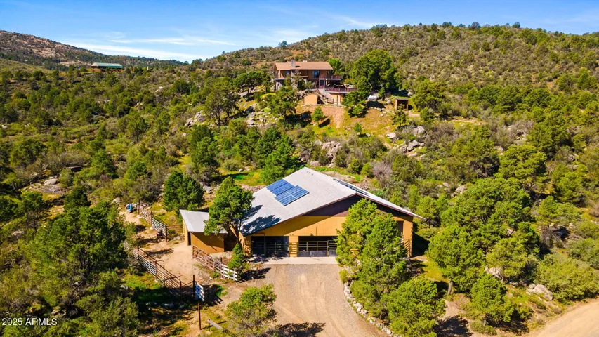 Custom home nestled into the boulders with breathtaking, panoramic views. A one of a kind architectural design, the home melds seamlessly into the mountain and preserves the natural landscape. Multiple decks are strategically placed – what a feast for the eyes! And several outdoor living spaces provide additional choices for enjoying this gorgeous property. Oversized windows bring the outdoors in. There’s not a bad seat in the house! Corner fireplace is centrally located for warmth on chilly nights. Kitchen opens to dining room which exits to a partially covered huge walkout deck. Two refrigerators! Both bedrooms include en suites. Large loft is a great flex space for an office, studio or game room. Single car garage near main home. **CLICK MORE FOR ADDITIONAL INFORMATION** Expansive workshop / barn includes RV parking, abundant storage and shelving with plenty of room for cars, tractors, tools and toys. NO HOA! HORSES WELCOME! 12 x 20 stall with large turnout paddock and round pen Trail riding opportunities for miles. Property is completely off grid. Private well is windmill driven. Solar with battery storage and generator back up. MOVE-IN READY! Unique homes with incredible views are often hard to access. Not this beauty! Just under 2.5 miles from paved road, travel on the community maintained dirt road is easy yet the destination is very private. 16 magnificent acres provide a peaceful respite and retreat from the hustle and bustle. This is rural livin’ at its finest.