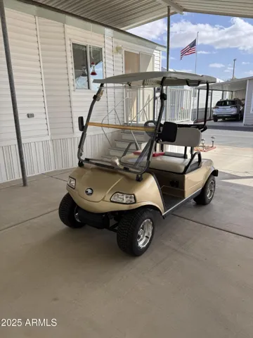 and extra metal roofing over the home. Golf cart has new batteries installed last year. Community has multiple pools and a large active clubhouse. Don’t miss this great home!