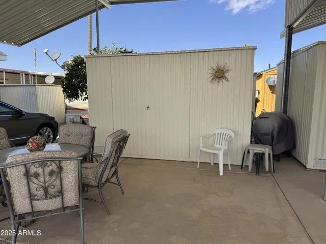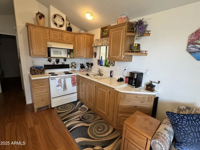 Welcome to Caliente, an active 55+ park model/RV park located in Florence where you own the lot, NO LOT RENT!! Built in 2000, this furnished home has 1BR/1BA, updated flooring, vaulted ceilings, lots of light and even more storage. It’s cozy and updated in the right places. Bathroom has a step-in shower with grab bars, newer water heater and heat pump, new exterior paint, 2 storage sheds, and a golf cart. Storage shed #1 has a full-size