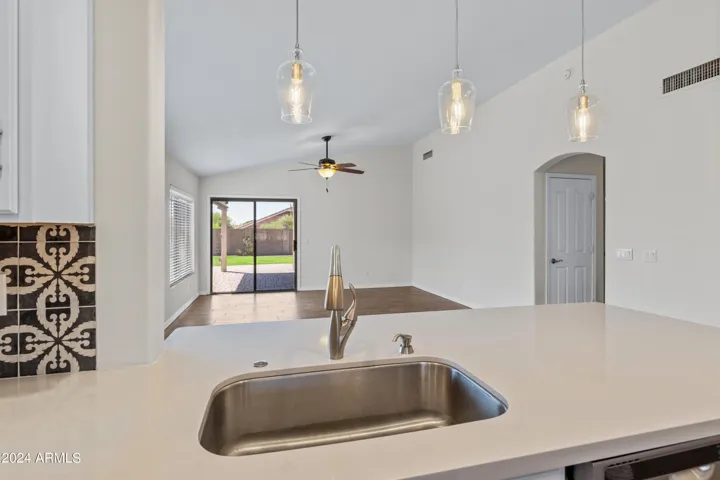 Experience the perfect blend of comfort and privacy with this exquisitely updated 3-bedroom, 2-bath rental home situated on an oversized corner lot in the highly desirable neighborhood of Eagle Ridge. Nestled in the breathtaking Sonoran Desert, this open-concept gem offers unparalleled mountain views and a serene living environment. Step inside to discover a spacious living area with soaring vaulted ceilings and a reimagined kitchen that’s sure to impress. Featuring trendy finishes, a breakfast bar, quartz countertops, stainless steel appliances, and a designer-inspired backsplash, this kitchen is a culinary enthusiast’s dream. The cozy bay window nook provides the perfect spot for dining with family. Recent upgrades include stylish Bedrosion 8 x 36 wood plank tile flooring throughout, new baseboards, updated window treatments, and recessed lighting. The inviting Dunn Edwards color palette and Hunter Douglas ceiling fans enhance the home’s modern aesthetic, while shade screens throughout add to your comfort.