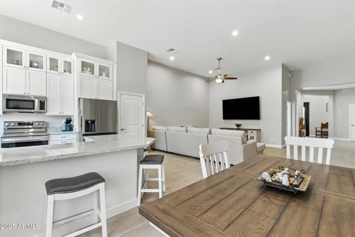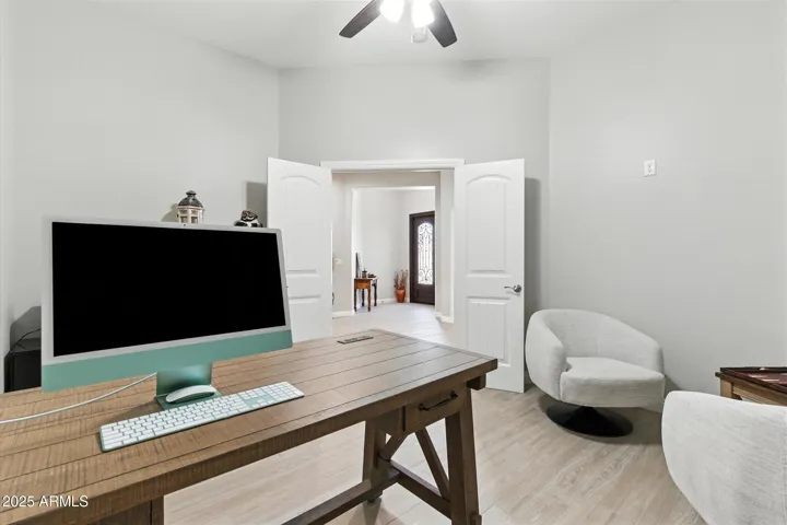 Enjoy stunning views of Superstition and Dinosaur Mountains in the gated community of Fairway Views in scenic Gold Canyon! This 1,936 sq ft single family attached home offers a great room floorplan, 2-bedroom + den. Built in 2022 with beautiful granite counters and cabinets. Plus, the home features 3 newly installed custom matching iron doors (front, back, and primary bedroom) and high-efficiency windows on the south side of home enhancing both curb appeal and energy savings. Enjoy the community pool or a quick walk to the Gold Canyon Golf Resort—home of Dinosaur Mountain and Sidewinder golf courses and all the exceptional recreation and relaxation in this private community. Don’t miss your chance to live in the serenity and natural beauty of Gold Canyon!