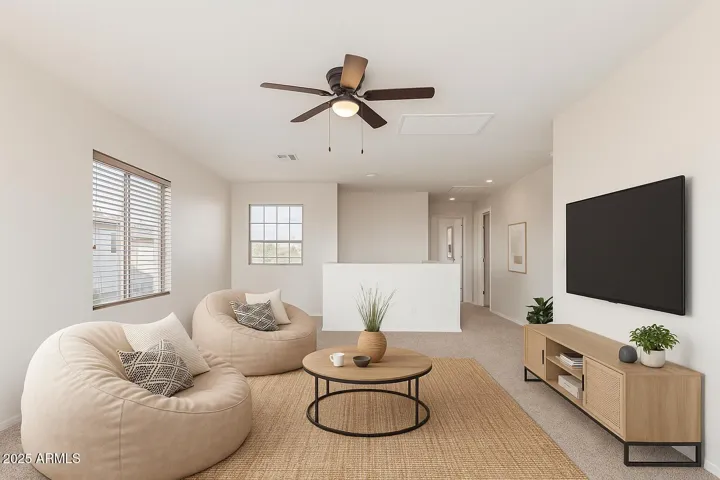 Welcome to this delightful residence in Sundance! Discover an appealing open layout w/high ceilings, blinds, & durable tile flooring. The gourmet kitchen comes w/granite counters, abundant wood cabinetry, a tile backsplash, & a peninsula w/a breakfast bar. Brand-new, never-used stainless steel appliances complete the space. You’ll also find a spacious loft that provides a versatile living space. The bright primary bedroom showcases new carpeting, an ensuite w/double sinks, & a walk-in closet. The home has also been freshly painted throughout. Imagine tranquil evenings in the sizeable backyard, which offers a full-length covered patio & tons of space for crafting your dream oasis. Key updates include a new roof (2022) & a recently serviced HVAC system (August 2025). Don’t miss out on this!