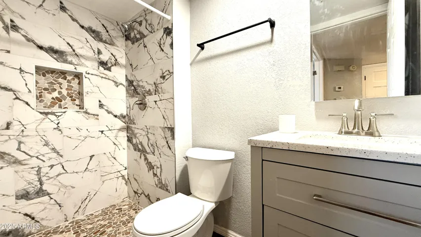 $300 Credit Towards Move In Costs! This first-floor condo offers 2 bedrooms, 2 bathrooms, and 965 sq. ft. of comfortable living space. The bright, open layout includes an upgraded kitchen and baths, modern flooring, and a spacious living room with French doors leading to a covered patio and private storage. The primary suite features a walk-in closet and ensuite bath, while the second bedroom—with French doors—works perfectly as a guest room or office. Additional highlights include in-unit laundry, assigned covered parking, extra storage, and all utilities covered (water, sewer, trash, and landscaping included). Enjoy community amenities and a convenient location just minutes from the I-17 and 101 freeways, with shopping, dining, and everyday es