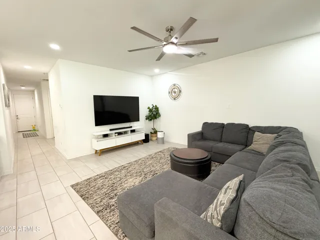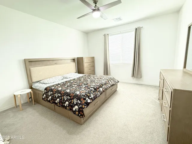 No Application Fees! Newer 4 bedroom, 2.5 bathroom East Mesa home with upgraded finishes throughout located in Destination at Gateway East. The home features a spacious open floor plan with 12” x 24” tile flooring in all living and high traffic areas, neutral paint, recessed LED lighting, ceiling fans in every room, and 2-inch wood blinds. The bright living room flows seamlessly into the modern kitchen, which includes quartz countertops, subway tile backsplash, shaker cabinets, large island with breakfast bar, walk-in pantry, gas range, and all stainless steel appliances. The split floor plan includes a large primary suite with walk-in closet, double linen closet for extra storage, dual sink vanity, and step-in shower. Secondary bedrooms are generously sized with good natural light. The laundry room includes upper cabinets for additional storage, and a washing machine and dryer may be provided upon request. The garage offers epoxy flooring and built-in storage cabinets. Low-maintenance yard and modern curb appeal complete this desirable East Mesa home.