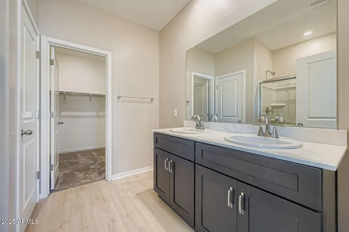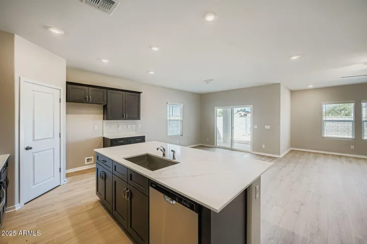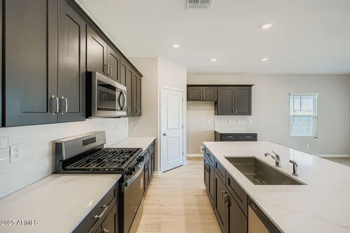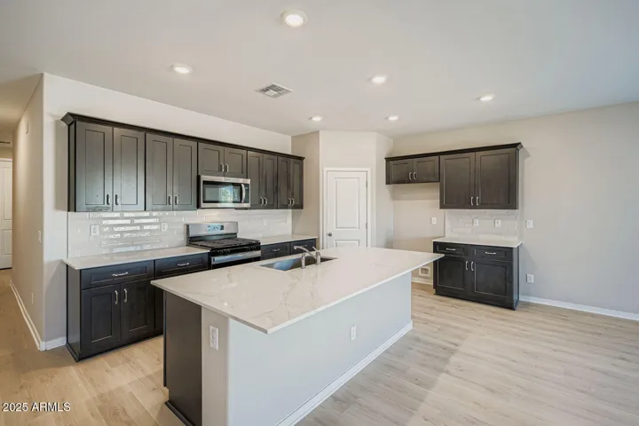 A stunning single story home that you will be excited to show off to your friends. The home has beautiful luxury vinyl planks, a gas stove, quartz countertops, dark cabinets with soft close drawers and cabinets. The split bedrooms will add extra privacy for you. Ceiling fans included in the great room and primary bedroom and the blinds are already installed. This is a must see!