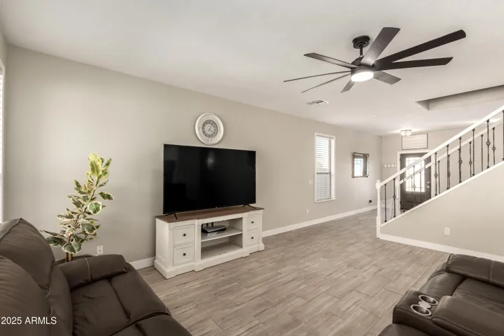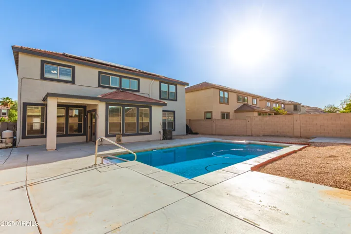 This is the home you’ve been waiting for Over 3000sq ft of a freshly painted beauty. Step into this wonderful neutral colored formal living room/ Dining room. opening to a very large area consisting of a Large family room & wide open kitchen, a really nice island and lots of cabinets with custom butcher block counters. The upstairs has a huge loft area that can be converted to a 5th bedroom with just 1 wall. loft is large enough to set up a game room or private theater room. The floors are a nice neutral wood grained grey and upstairs is laminate wood flooring, new bedroom closet doors 2 be installed. Enjoy the really large pool. Roof has a 25 year warranty. The home has solar and with a house this large it is well worth it. The new buyer would have to take over the existing payments You don’t want to miss this beauty and best yet it is priced over 100k less than the new builds just blocks away. This house is move in ready just bring furniture and food