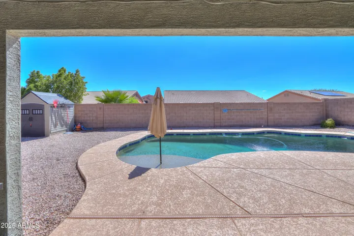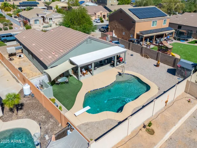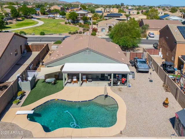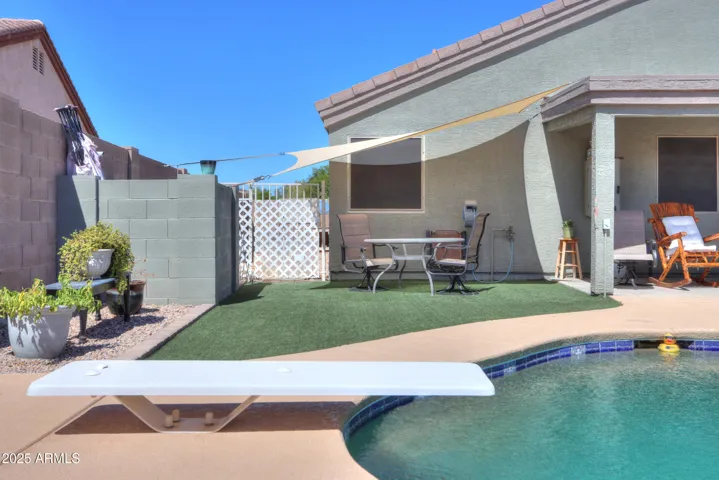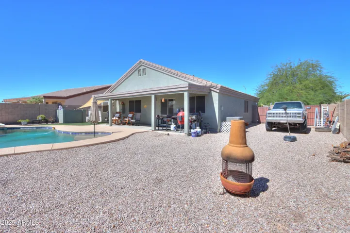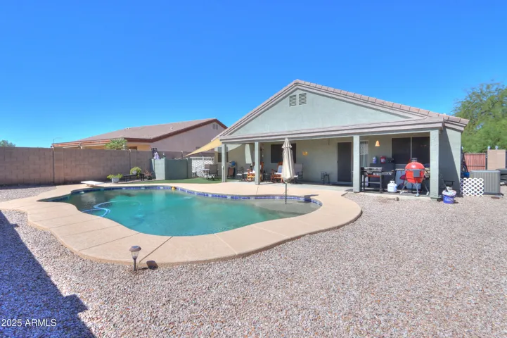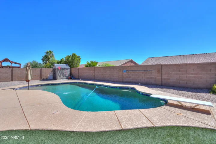 Avalon 4 bedroom with a diving pool! This 4-bedroom 2 bath home shows pride of ownership with spacious eat in kitchen, great room with ceiling fan. Owners’ suite has vault ceiling and bathroom with separate tub and shower. Oversized backyard with diving pool and extended patio great for entertaining. RV Gate. Recently added outdoor sunscreens, and recently painted exterior. Garage has evap cooler and owner has added pull-down ladder for attic access.
