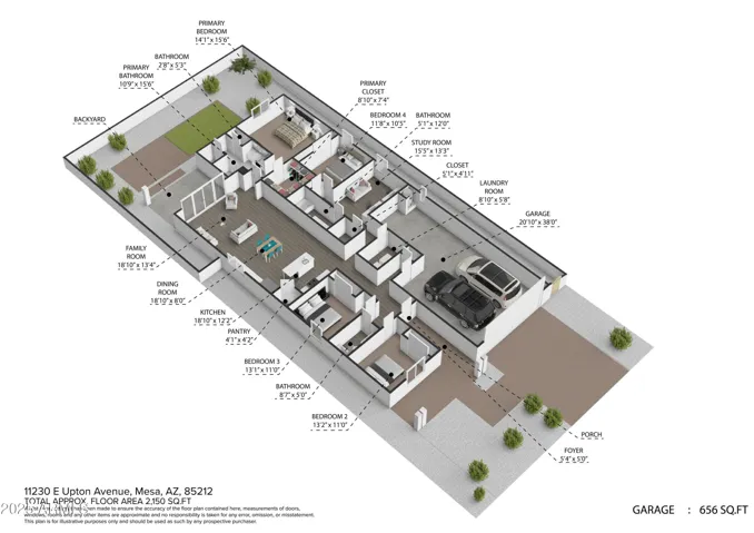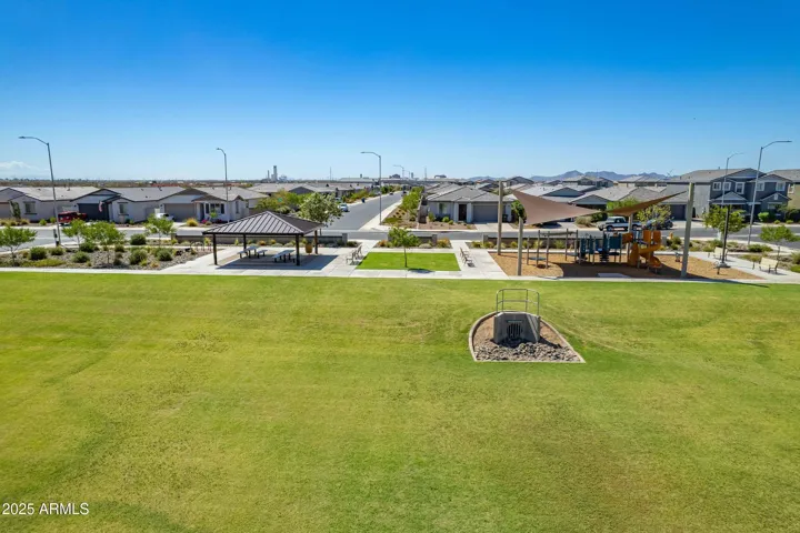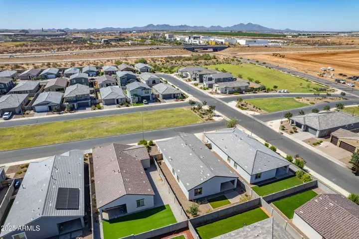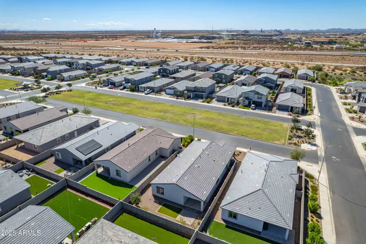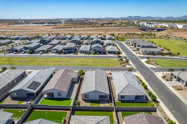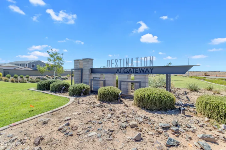 Welcome to this SINGLE level home in Mesa’s growing Destination at Gateway community. Offering four bedrooms, three bathrooms, a den, and a THREE car tandem garage, this residence combines modern design with practical comfort. The open layout highlights a thoughtfully designed kitchen with stainless steel appliances, 42-inch white cabinetry, and a spacious island ideal for gathering. A large sliding door off the great room extends the living space outdoors, creating a natural flow to the backyard for relaxation or entertaining. Destination at Gateway offers a lifestyle surrounded by parks, walking trails, and green spaces, while also providing easy access to shopping, dining, and entertainment. Phoenix-Mesa Gateway Airport and major freeways are minutes away, and nearby destinations like Phoenix-Mesa Gateway Airport and major freeways are minutes away, and nearby destinations like the Superstition Mountains, Usery Mountain Regional Park, and Queen Creek Marketplace add even more convenience and opportunity to enjoy Arizona living.