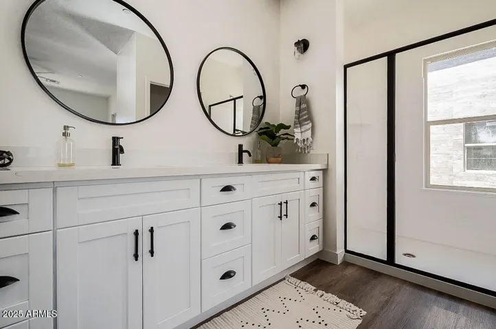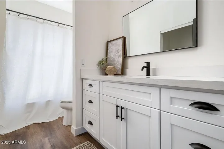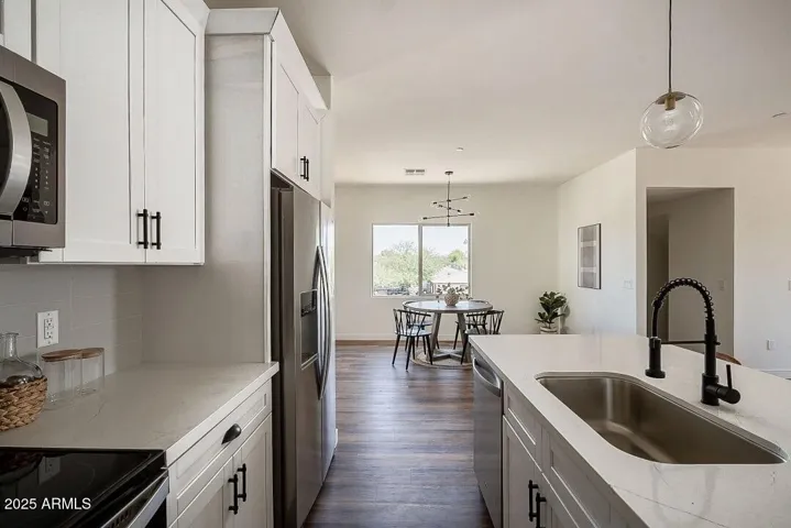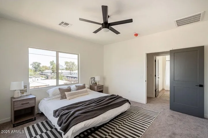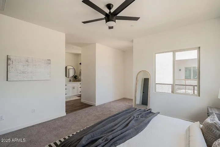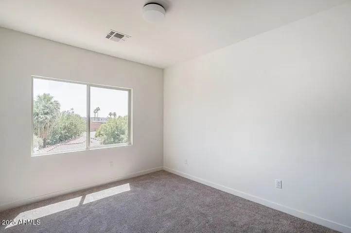 Thoughtfully designed 2 bedroom, 3.5 bath townhome in Phoenix’s Anderson Row complex. This home is FULL of modern upgrades and fixtures. Gorgeous eat-in kitchen features quartz countertops, elegant white shaker cabinets, black hardware, breakfast bar and stainless steel appliances! Enjoy vinyl wood plank flooring, 10ft ceilings, neutral paint, and tons of natural light throughout! With separate dining area, and ground level flexible office/den this home has an ample amount of living and entertaining space! Top floor primary suite includes an oversized walk-in closet, double sinks, large shower and private balcony. In unit laundry with included washer/dryer! 2 car garage! Great location in the heart of Midtown!