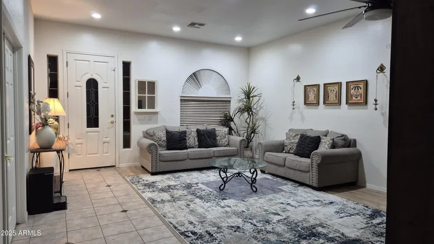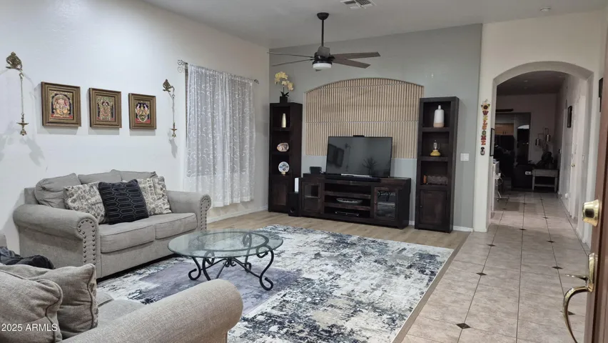 Fantastic fully remodeled single level 4 bed, 2 bath home in Terramar community, Peoria. Home enjoys new paint inside, upgraded tile flooring in high traffic areas & bedrooms. NO CARPET!! Enter home into large formal living and dining room with 10 foot ceilings. Remodeled Kitchen has huge Quartz island looking out into a spacious family room and enjoys 42” high upper cabinets. All appliances included – Refrigerator & Washer Dryer. Oversized master suite with separate sitting area. Master bathroom has double vanities, separate tub and walk in shower, private toilet room and huge walk-in closet. Large, inside laundry room right off garage. Great covered patio outside with large backyard. Canopy, Patio furniture and BBQ in backyard stay. Close to grocery, retail shops, schools. MUST SEE!!