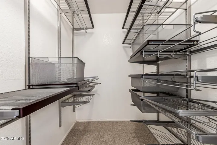 closet with custom shelves and a separate newer sliding door to private courtyard. Primary bathroom has a walk-in