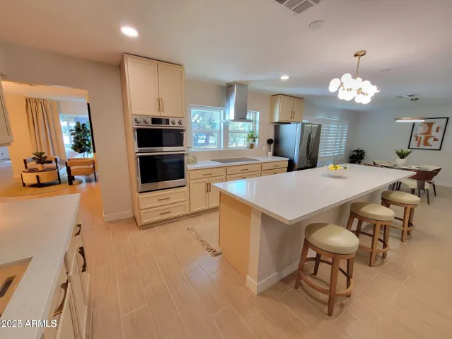 Step inside to discover a completely remodeled interior featuring a chef’s dream kitchen with brand-new cabinets, sleek countertops, modern fixtures, and all new stainless steel appliances. The kitchen flows seamlessly into the spacious living and dining areas, anchored by a brand new fireplace and enhanced with new ceiling fans, new carpet, and large windows that flood the space with natural