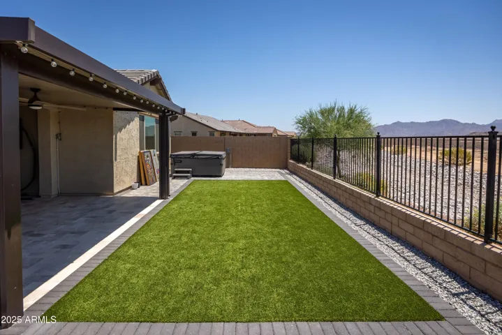 Welcome to your dream home in one of the most sought-after communities! This meticulously maintained 5-bedroom, 3-bath stunner offers 2,771 sq ft of elegant living space on an expansive 8,125 sq ft lot – and it’s just 3 years young. Step outside to your private resort-style backyard, where breathtaking mountain views meet a serene escape with no rear neighbors. Relax in the premium Bullfrog hot tub, unwind under the extended pergola, and enjoy evenings around the natural gas firepit. The space is beautifully finished with travertine, pavers, synthetic grass, and professional landscaping – designed for entertaining and effortless enjoyment. Inside, the home is turn-key and move-in ready, with a bright, open layout perfect for modern living. Whether you’re hosting or relaxing, this home del